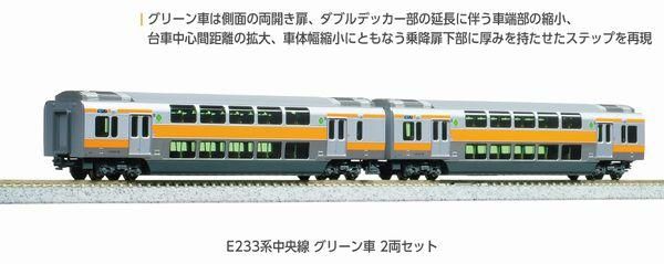 ◆既存のE233系中央線に組み込んでお楽しみいただけるグリーン車2両セットも同時にリリースいたします。〈10-1912/1913 E231系500番台 中央・総武緩行線〉などと併せて現在の中央線の風景をお楽しみいただけます。